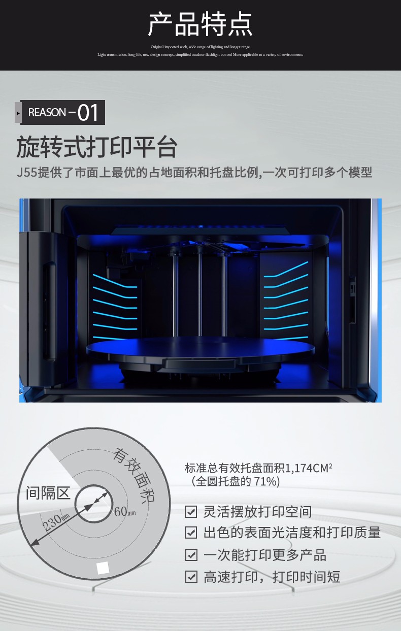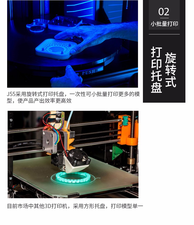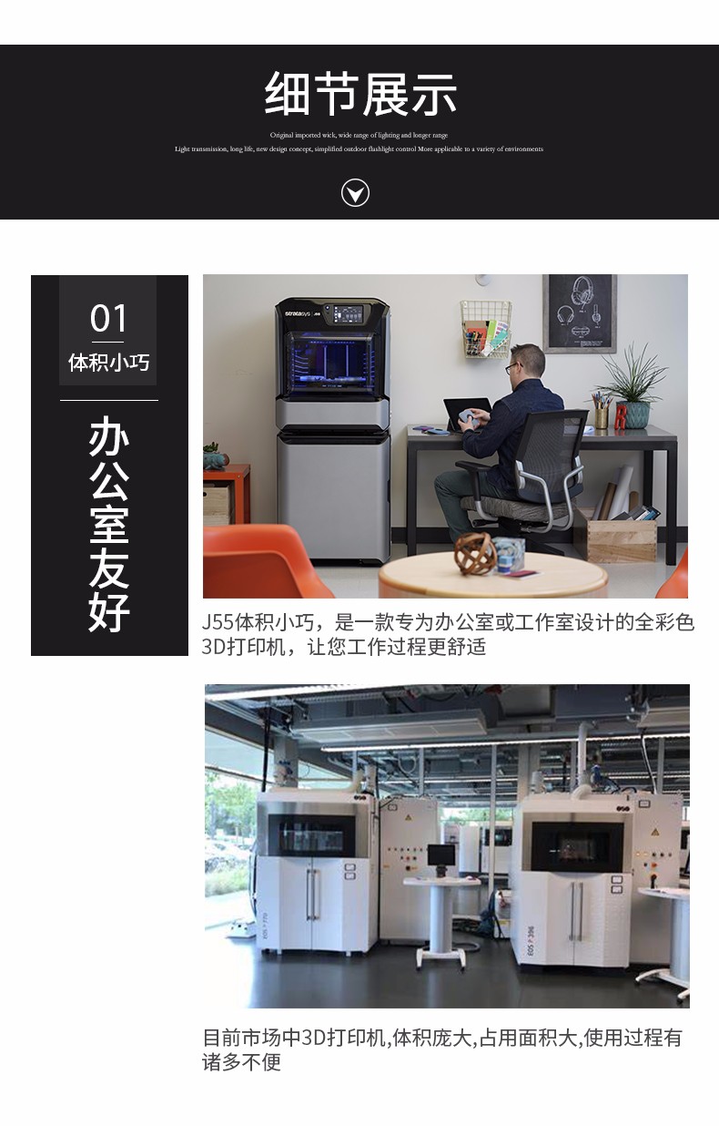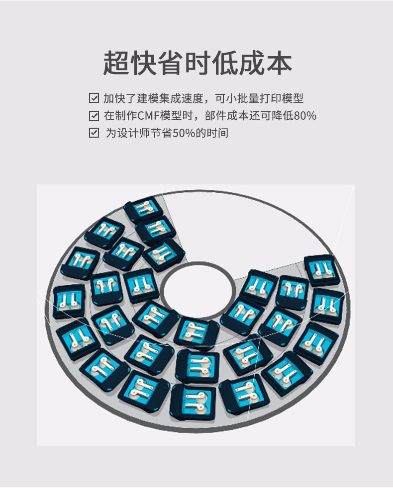 性能一:旋轉式打印平臺,J55采用旋轉式打印平臺,具有出色的表面光潔度和打印質量,擁有多材料功能以及可用于工業和機械設計的材料配置,可以保證非常穩定、一致的性能。性能二:超過500,000 種顏色組合J55可生成超過500,000 種可分辨的顏色組合,同時打印五種樹脂,并提供多材料性能。作為 PANTONE Validated? 認證的 3D 打印機,J55支持 Stratasys CMYK 顏色匹配超過1,900種可打印的 Pantone Solid Coated 和 SkinTones?,能顯著提高原型的打印速度、效率和色彩逼真度。無論您需要什么顏色和紋理,J55都能助您將最富想象力的想法變為現實,在設計過程中盡早作出更準確的決策。性能三:樣件幾乎無需后處理J55將 PolyJet 技術的高品質與緊湊、辦公室適用的設計結合起來,可以一次打印多色部件。由其打印出的零件幾乎不需要后處理,不僅將材料浪費降至最低限度,還大大節省了打磨和手工上漆的時間和工作量,使設計過程更加順暢,部件的品質更加穩定。