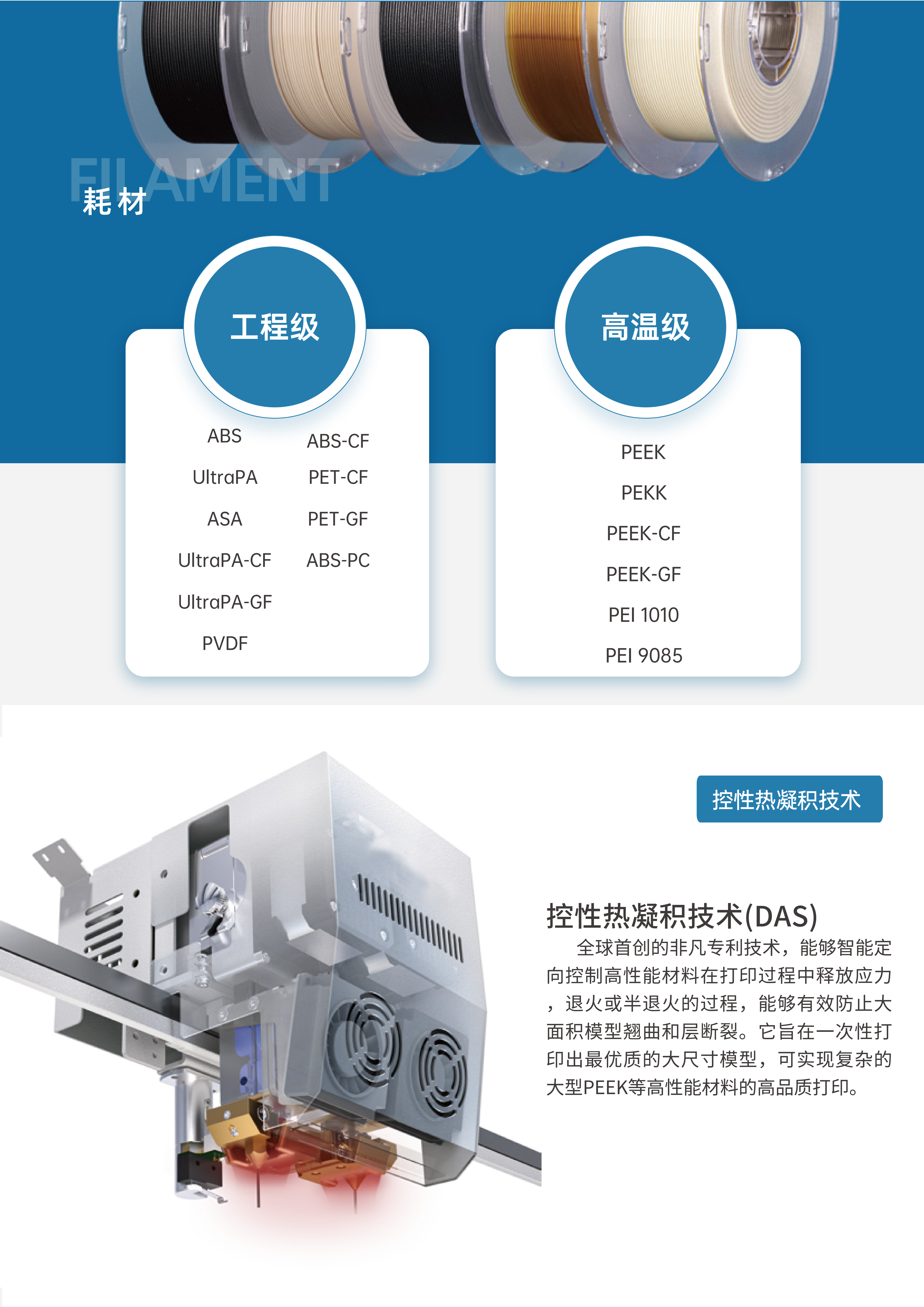 控性熱凝積技術:DAS核心技術智能控制高性能材料在打印時釋放應力,確保打印品質。