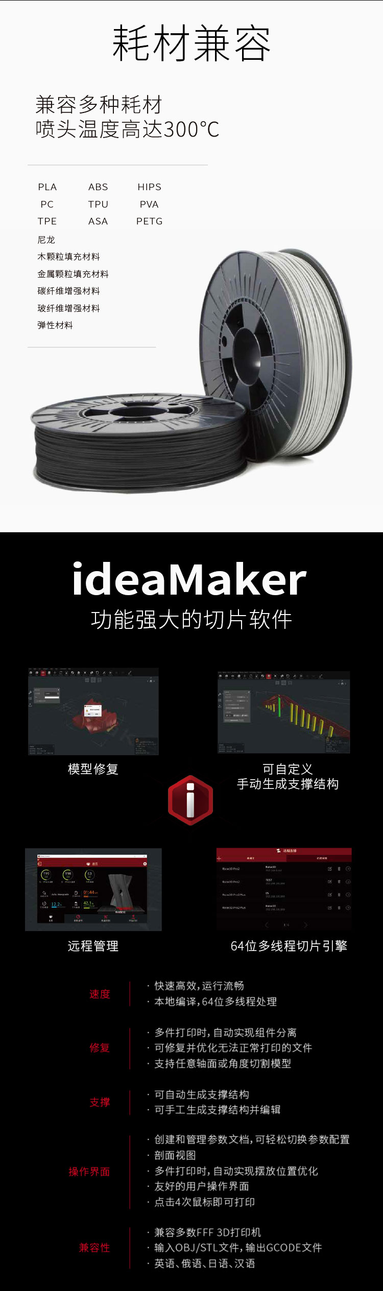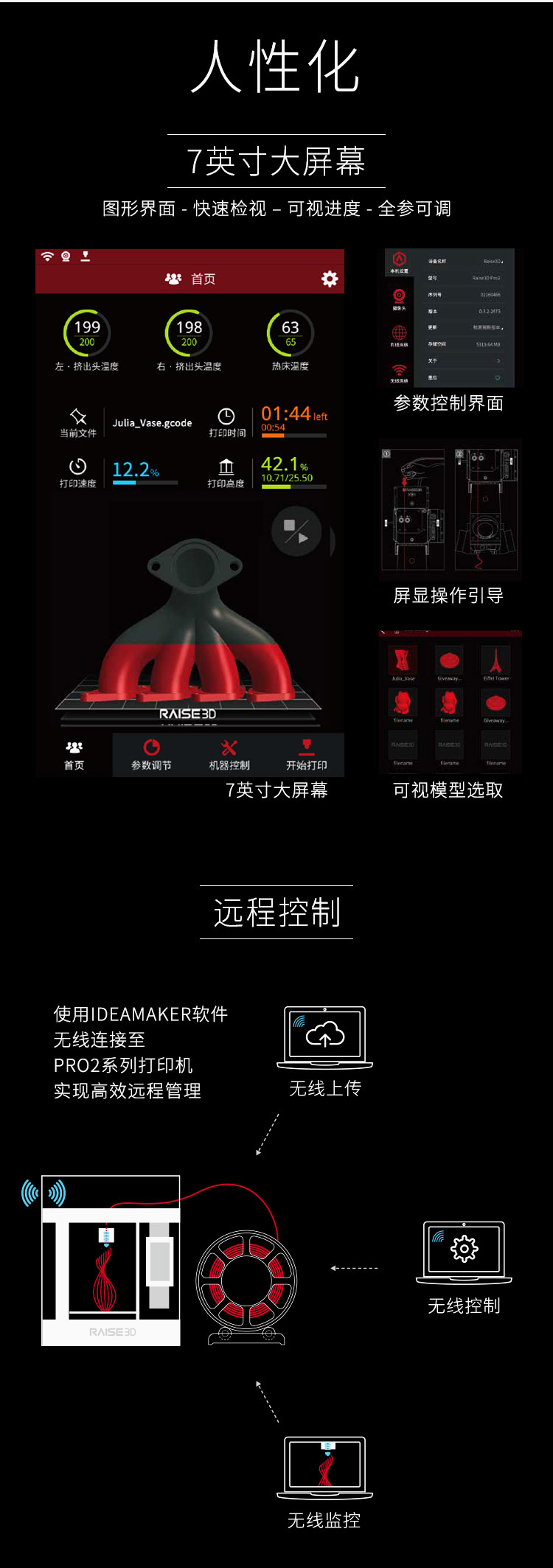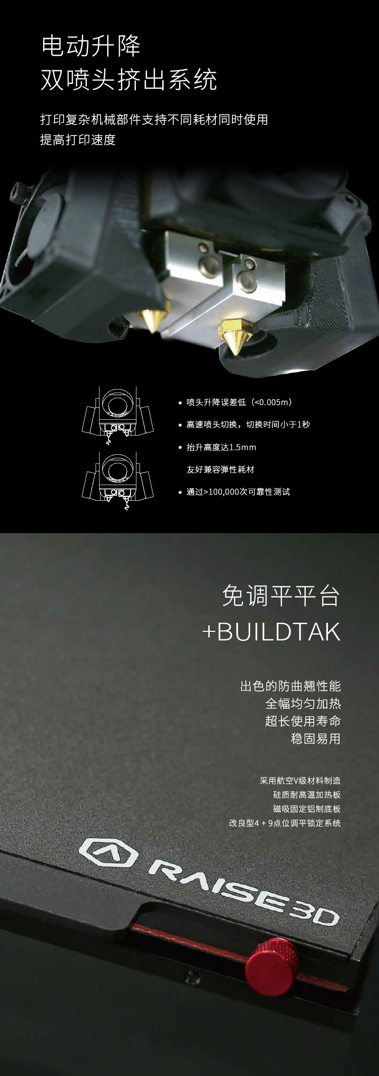 Raise Pro 2用于柔性制造的高性能3d打印機,24小時穩定運行,速度更快,質量更高,單雙噴頭,滿足你的高性能打印需求,電動雙噴頭擠出系統,免調試自動平臺,小身材,大智造!